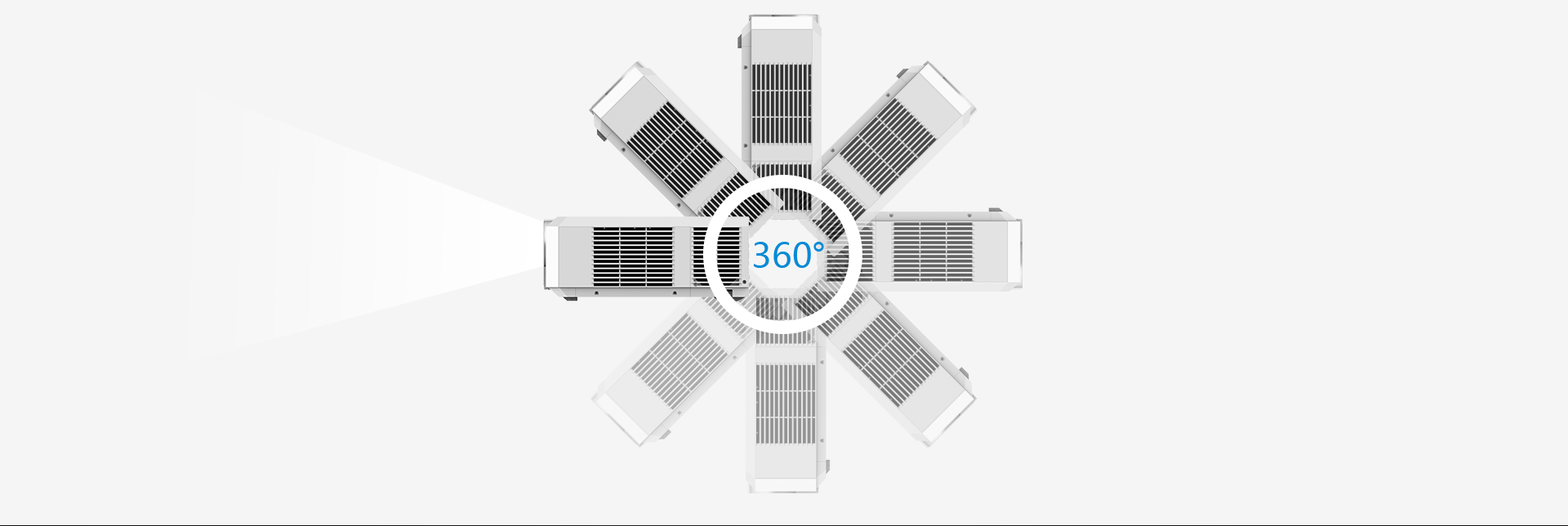 可沿垂直轴实现360°全方位投影, 包括在天花板或地板上进行投影, 从而完全打破了应用场合的局限性。