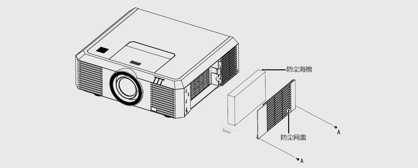 机身侧面装有可拆卸的加厚静电防尘网,静电防尘网厚度大于5mm,有效隔绝烟雾、灰尘侵入,更可随时方便拆卸、清洗,维护更轻松。